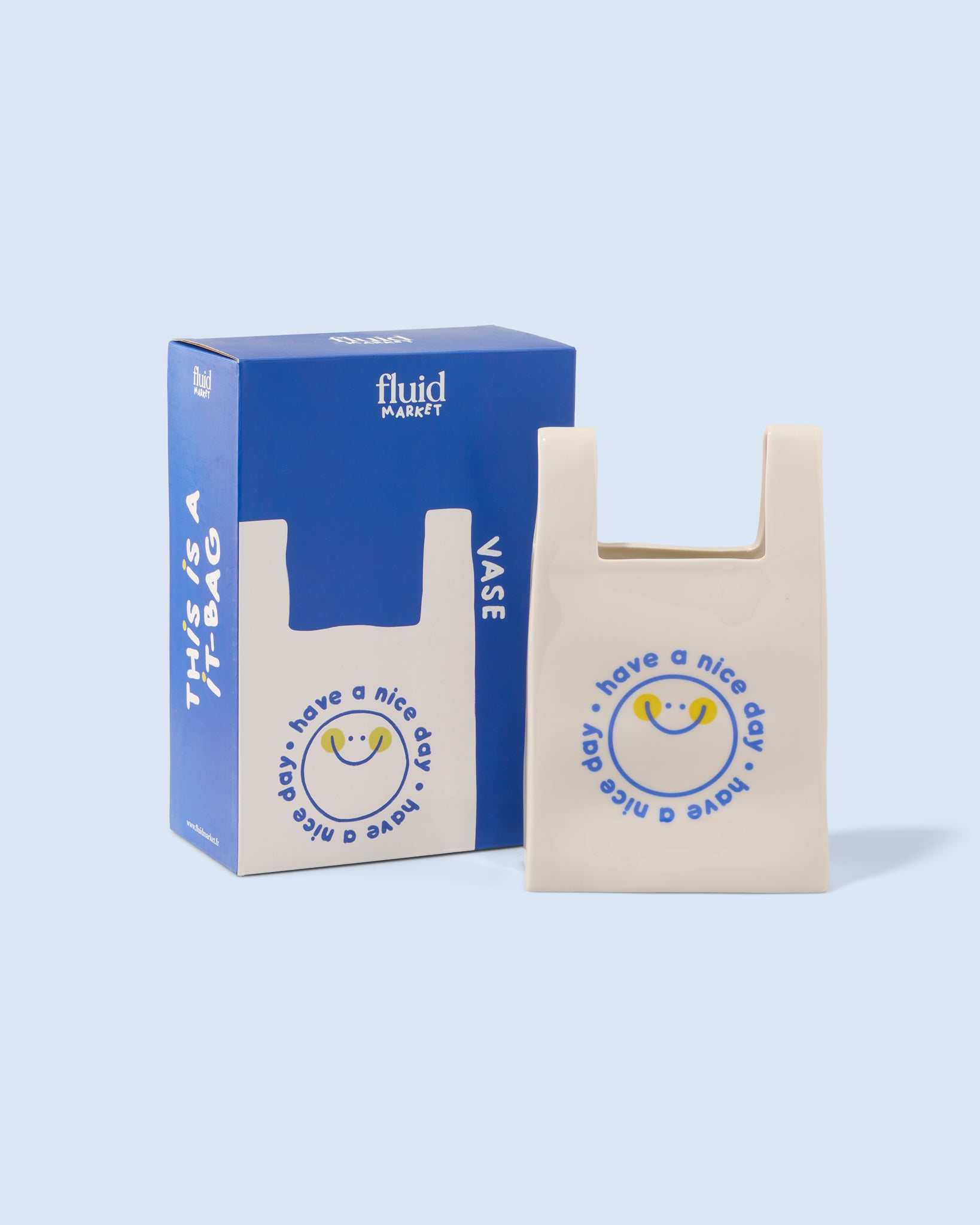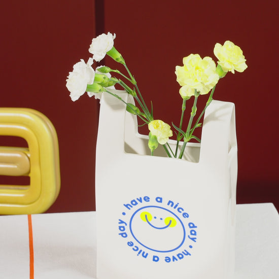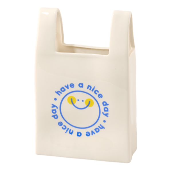 Jarrón de cerámica con forma de bolsa de plástico.