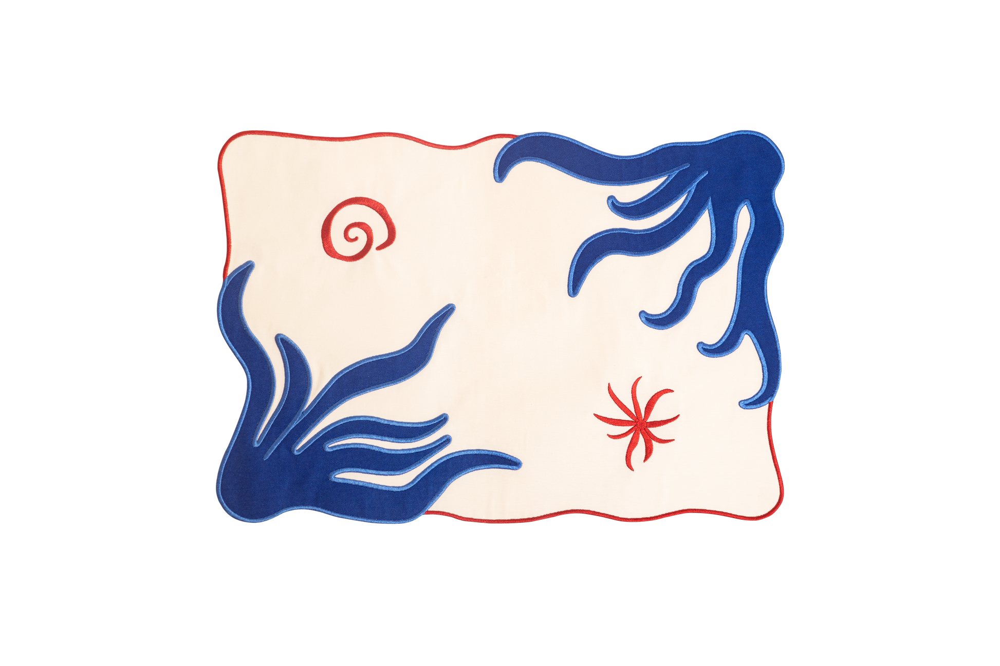Confeccionados en una exquisita mezcla de lino y algodón, y bordados con hilo de seda, este set de dos manteles individuales combina formas juguetonas con una artesanía refinada.