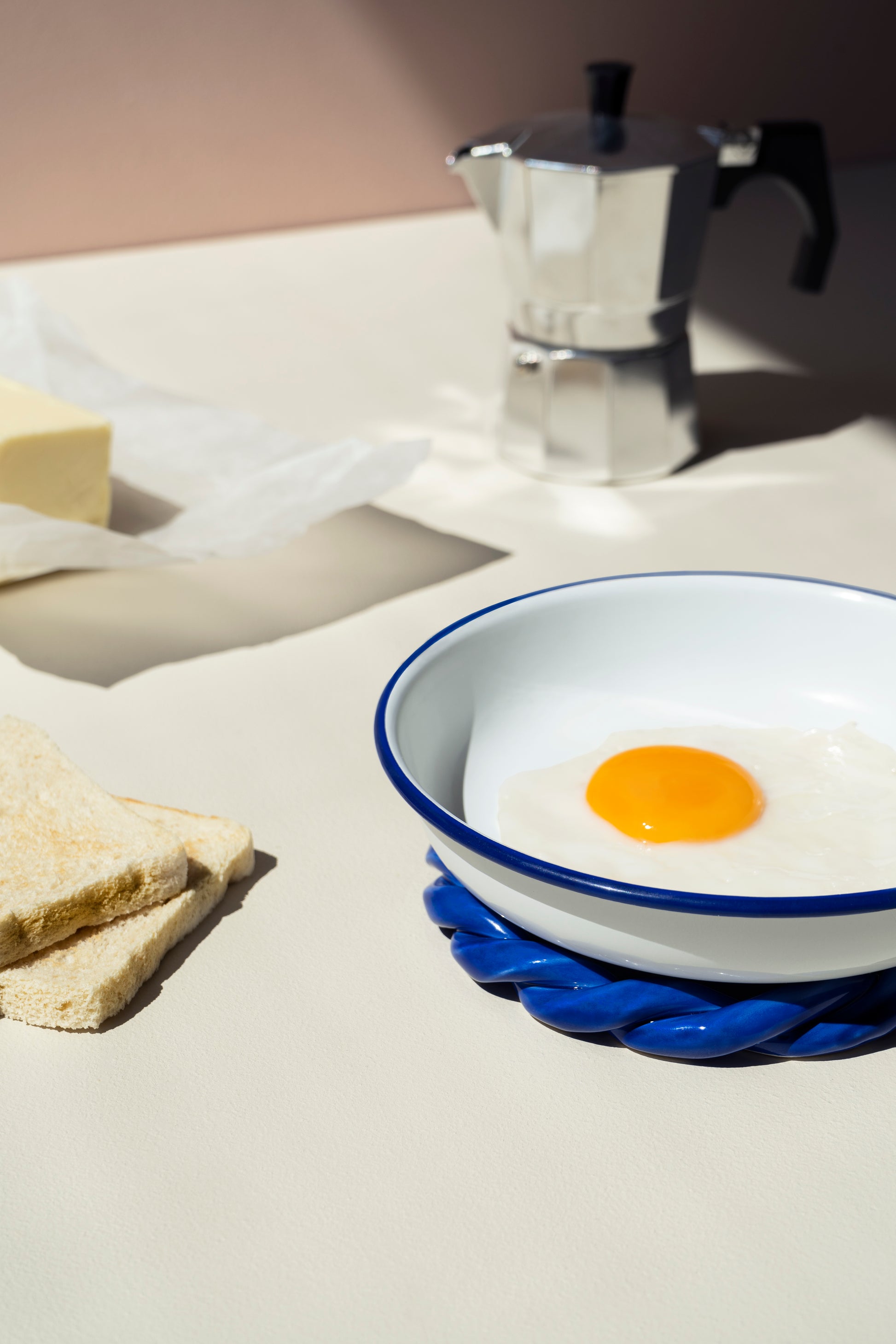 Los salvamanteles de cerámica Sicilia están elaborados en loza delicadamente entrelazada, creando un llamativo patrón en espiral.