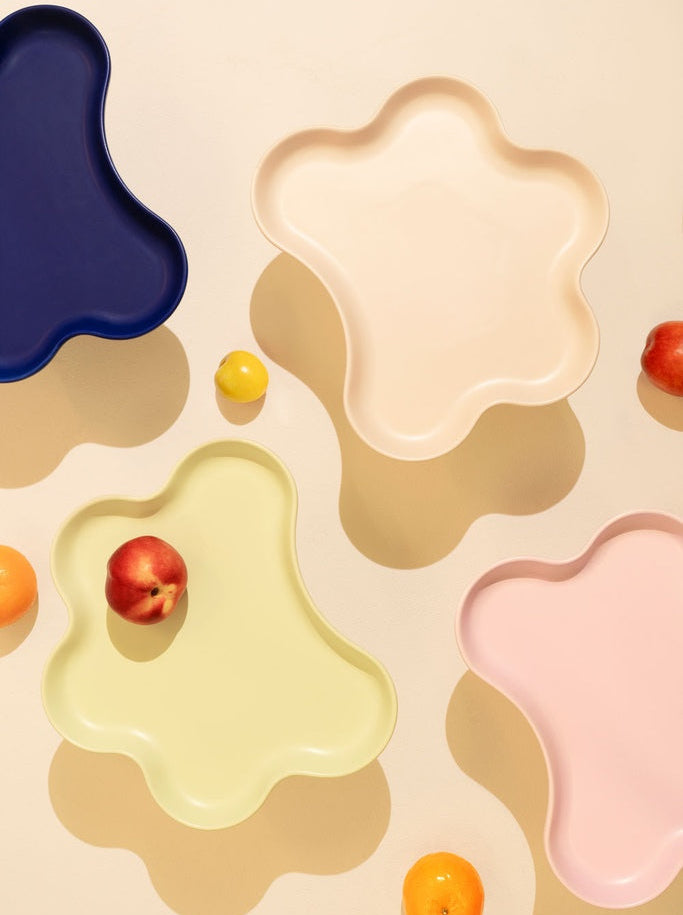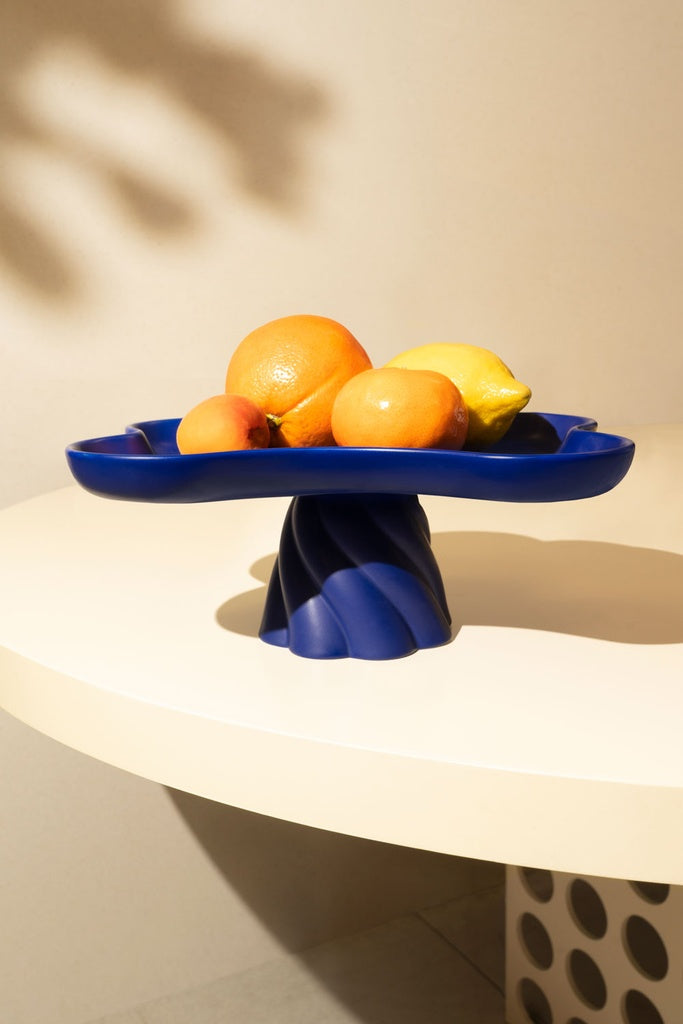 Las bandejas altas Templo, fabricadas en gres, están meticulosamente diseñadas con formas suaves y entrelazadas que evocan la belleza de las flores de nenúfar.