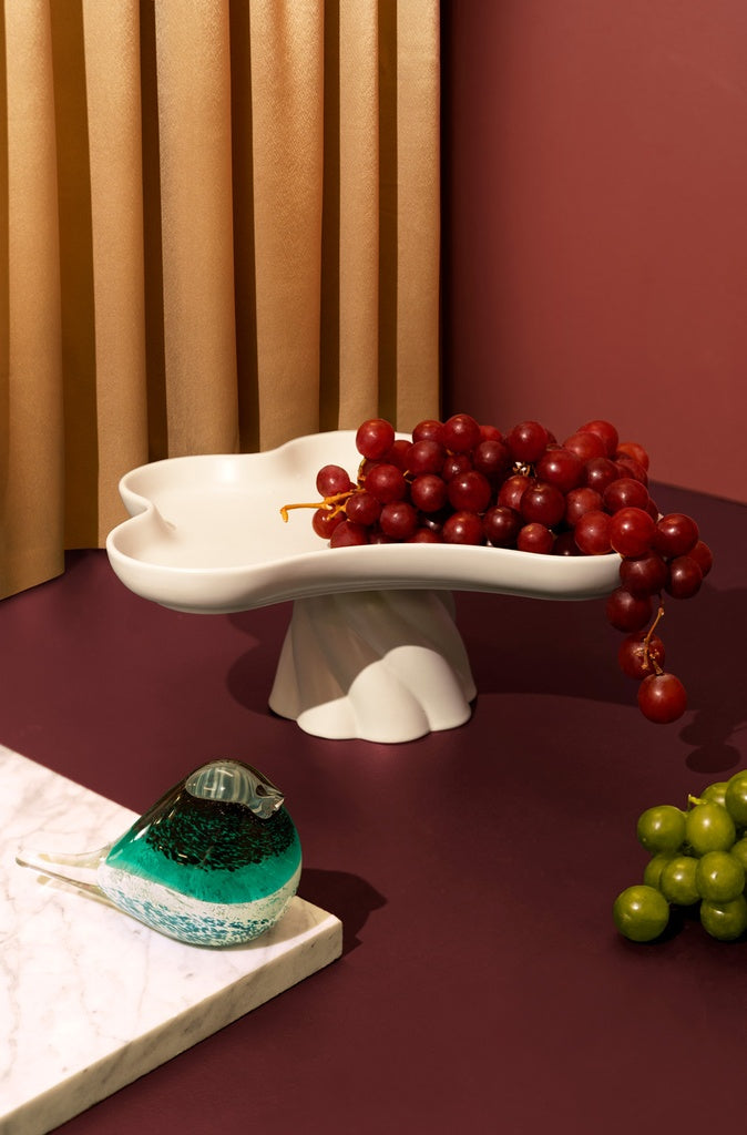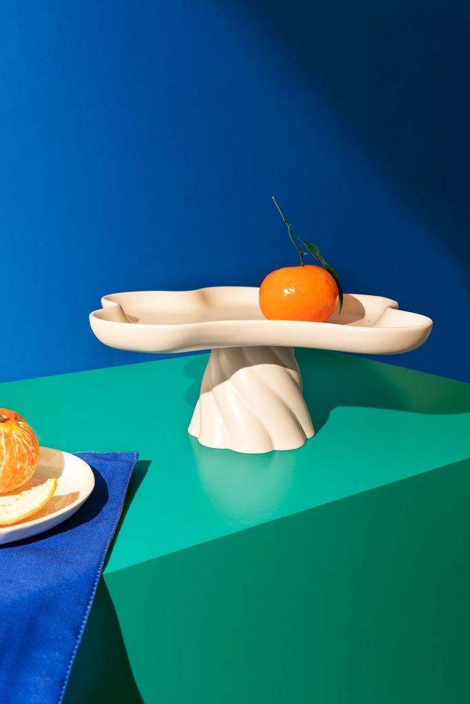 Las bandejas altas Templo, fabricadas en gres, están meticulosamente diseñadas con formas suaves y entrelazadas que evocan la belleza de las flores de nenúfar.